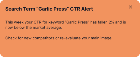 Listings are the heart of your Amazon business. Make sure you are presenting your best foot forward. Stay on top of changes that are made. Listing Hijackers. And advanced metrics like Brand Analytic Funnel Changes, Hourly Traffic fluctuations and more!